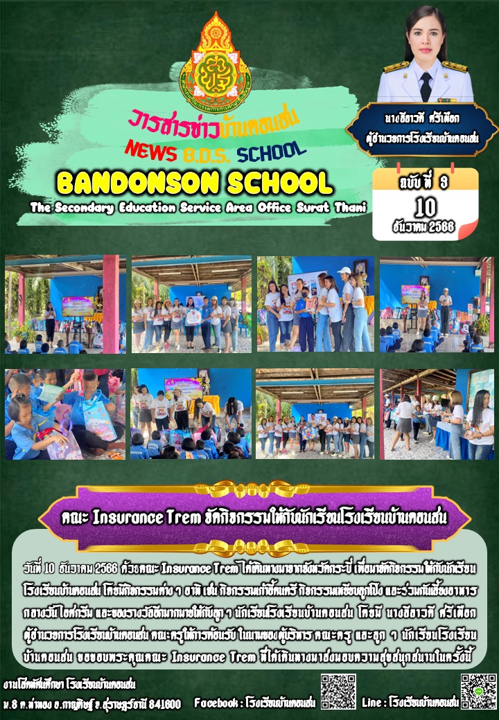 คณะ Insurance Trem จัดกิจกรรมให้กับนักเรียนโรงเรียนบ้านดอนสน